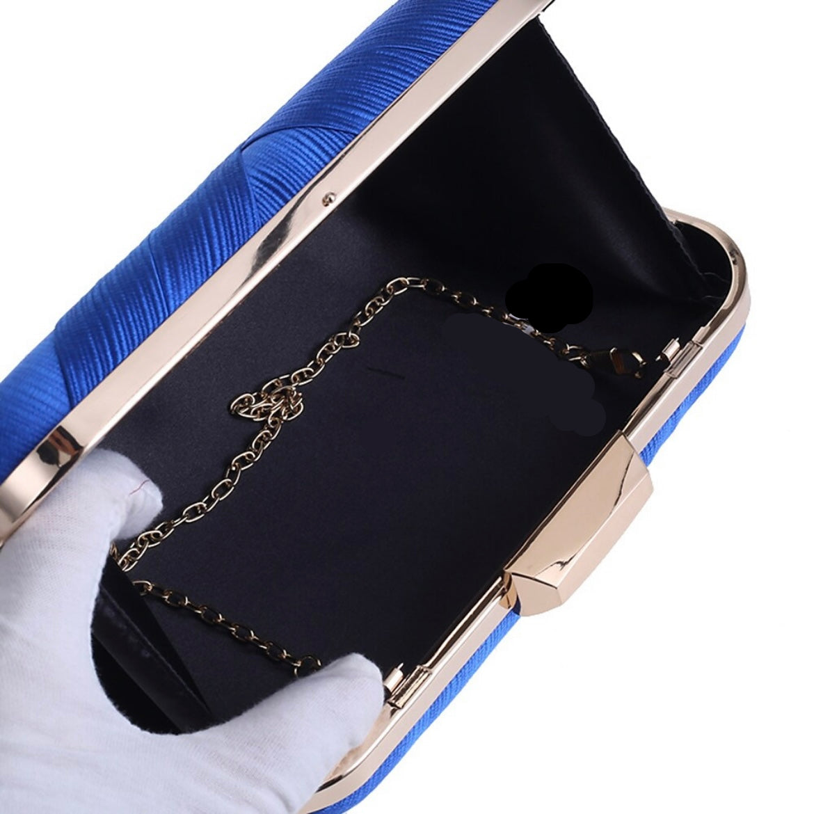 Criss-Cross design clutch, gold trimming.